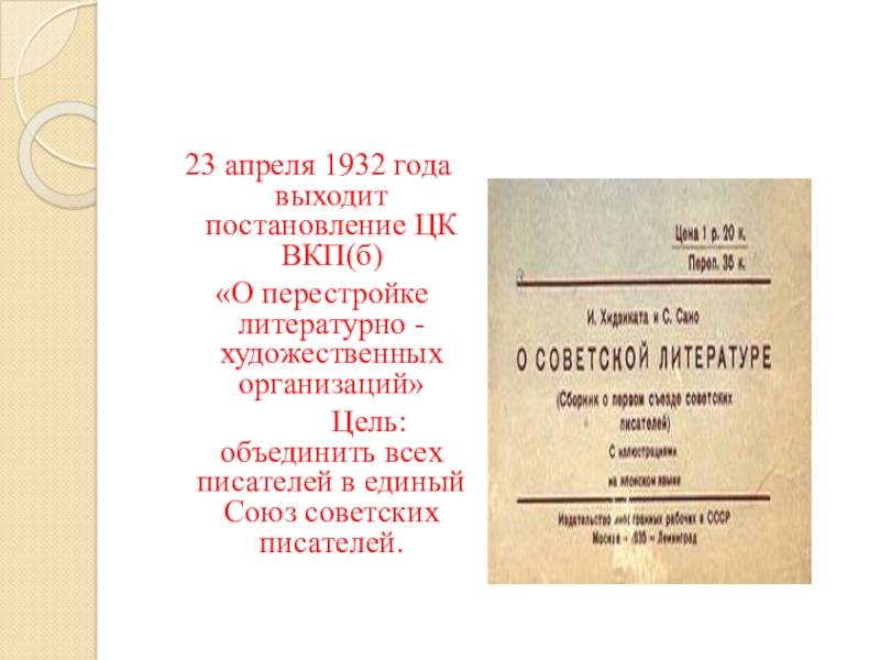 Слайд 323 апреля 1932 года выходит постановление ЦК ВКП(б)