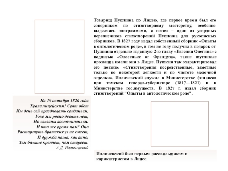 Илличевский был первым рисовальщиком и карикатуристом в Лицее.