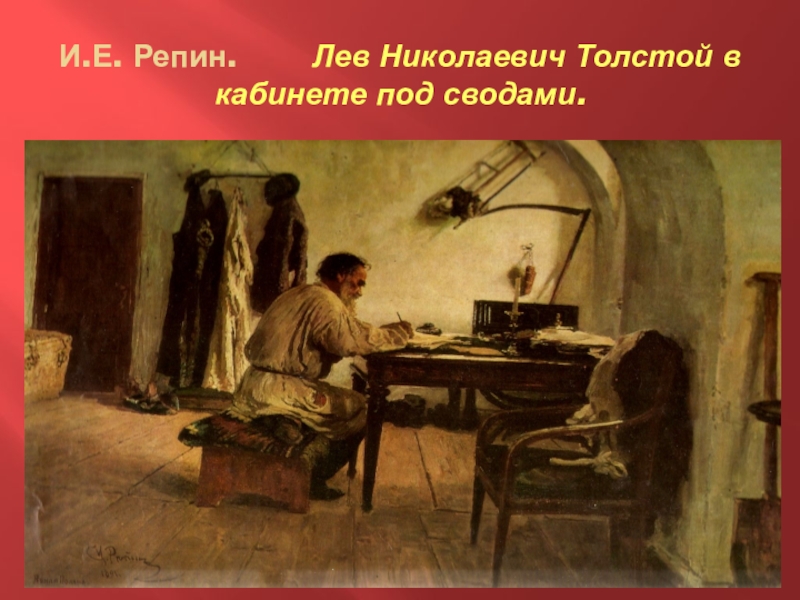 Слайд 4И.Е. Репин. Лев Николаевич Толстой в кабинете под