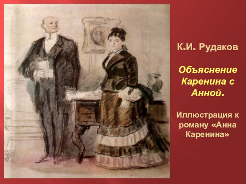 Слайд 13К.И. Рудаков Объяснение Каренина с Анной. Иллюстрация к роману «Анна Каренина»