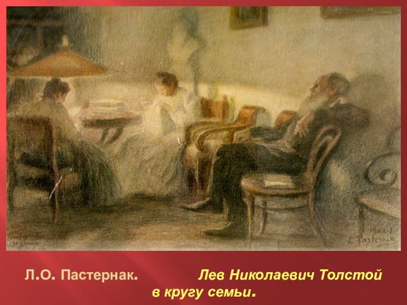 Л.О. Пастернак.       Лев Николаевич Толстой в кругу семьи.