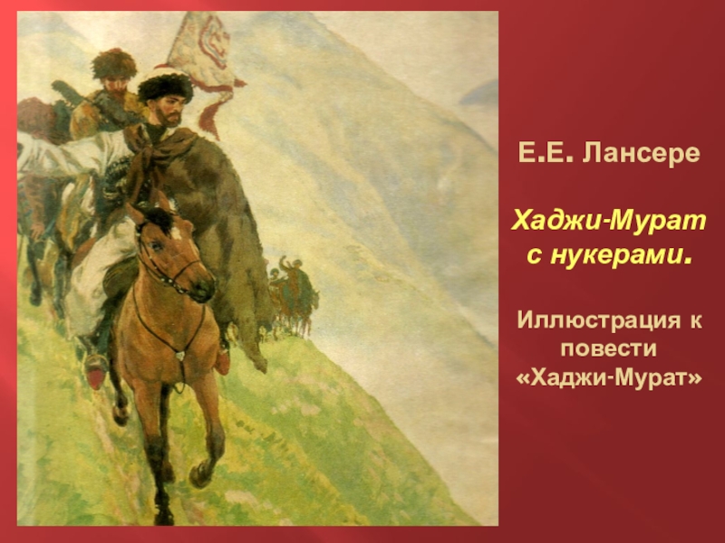 Слайд 9Е.Е. Лансере Хаджи-Мурат с нукерами. Иллюстрация к повести «Хаджи-Мурат»