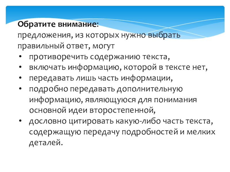 Слайд 7Чаще всего правильным ответом будут предложения, которые