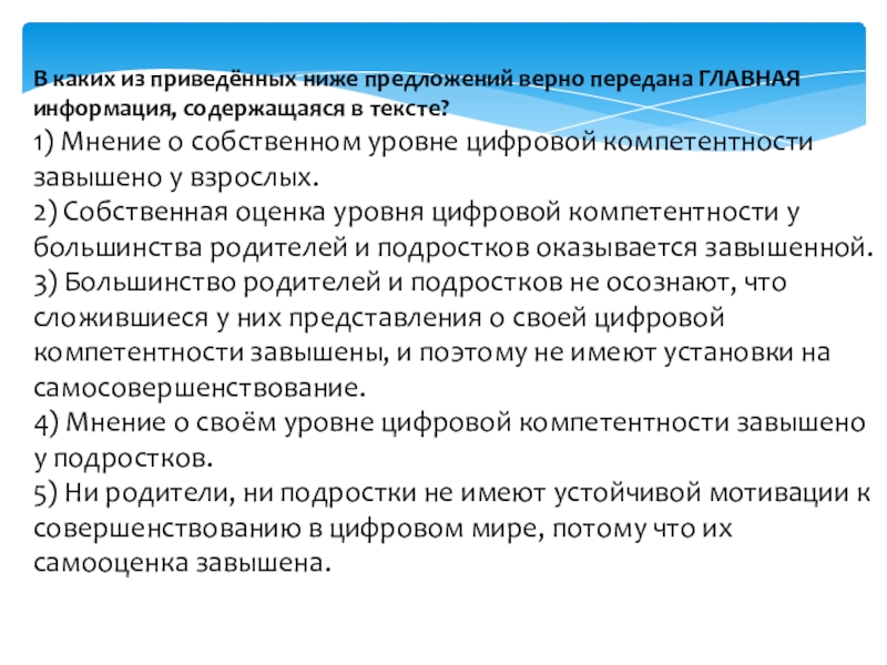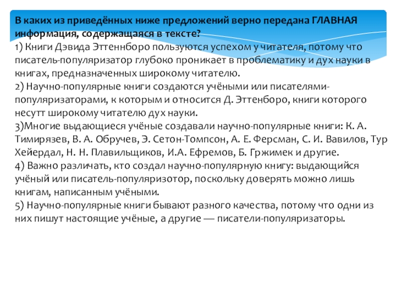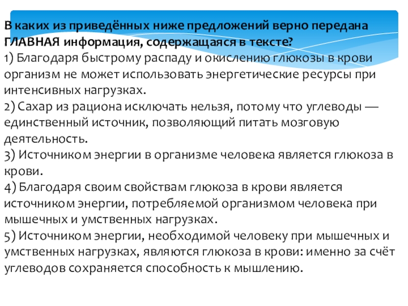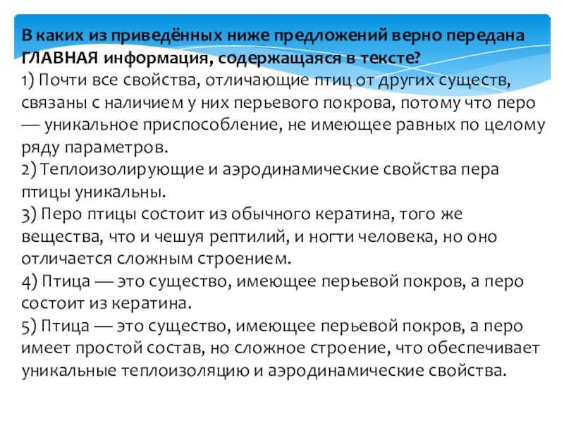Слайд 25В каких из приведённых ниже предложений верно передана ГЛАВНАЯ информация, содержащаяся