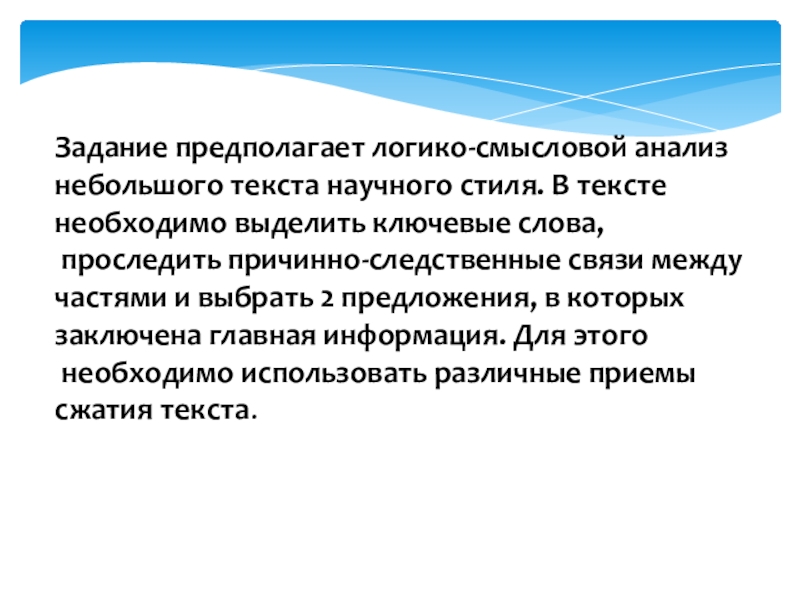 Задание предполагает логико-смысловой анализ небольшого текста научного стиля. В