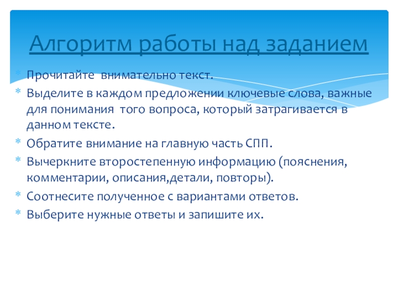 Вычеркните второстепенную информацию (пояснения, комментарии, описания,детали, повторы).