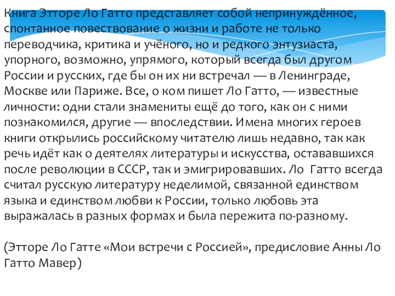 (Этторе Ло Гатте «Мои встречи с Россией», предисловие Анны Ло Гатто Мавер)