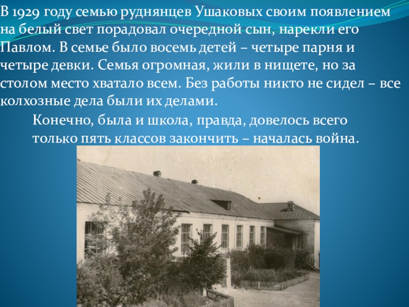 Конечно, была и школа, правда, довелось всего только пять классов закончить – началась война.