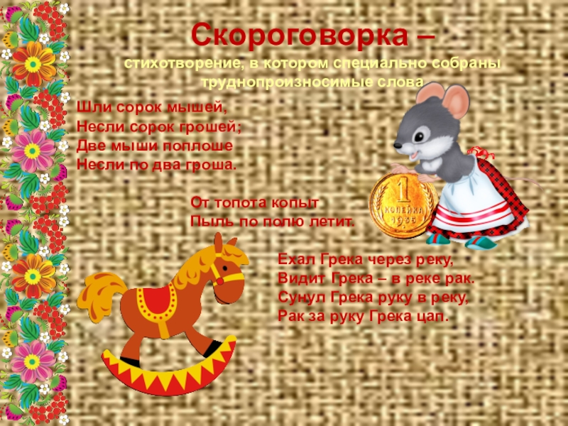 стихотворение, в котором специально собраны труднопроизносимые слова