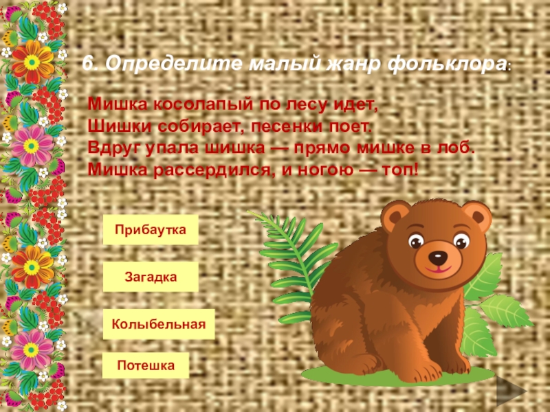 короткая стихотворная приговорка нянюшек и матерей, которые пестуют младенца.
