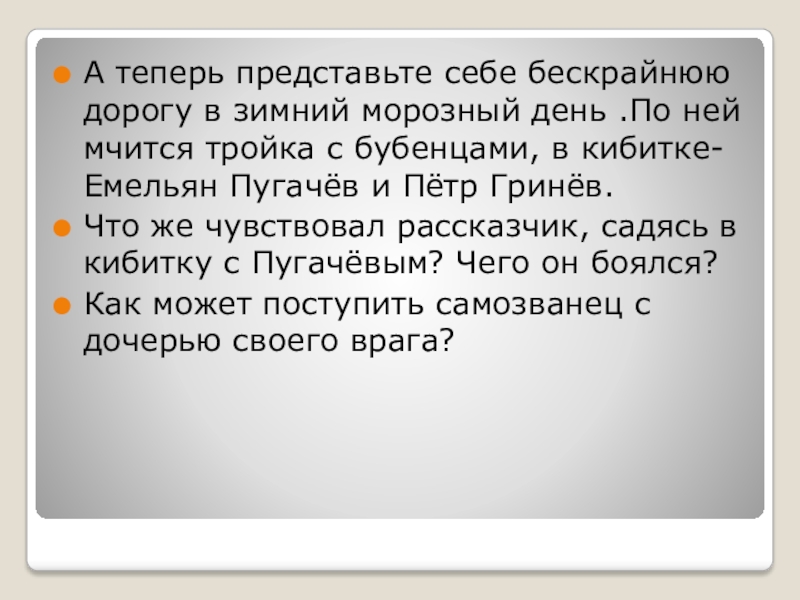 Слайд 9А теперь представьте себе бескрайнюю дорогу в зимний морозный день .По