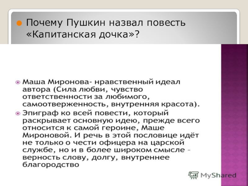 Почему Пушкин назвал повесть «Капитанская дочка»?