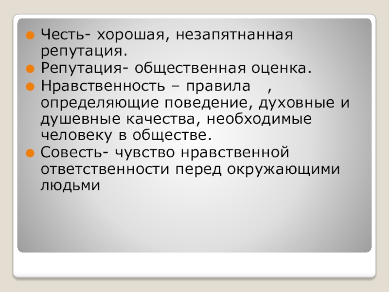Слайд 3Честь- хорошая, незапятнанная репутация.