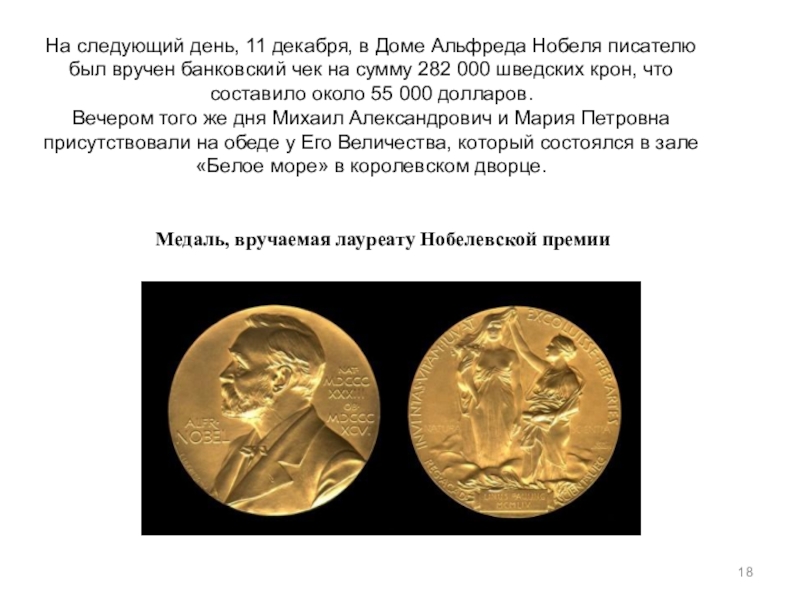 Слайд 18На следующий день, 11 декабря, в Доме Альфреда Нобеля писателю был