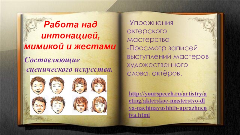 http://yourspeech.ru/artistry/acting/akterskoe-masterstvo-dlya-nachinayushhih-uprazhneniya.html