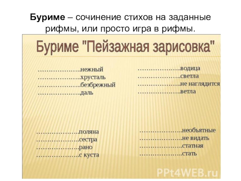Это сайт презентаций, где можно хранить и обмениваться своими презентациями, докладами, проектами, шаблонами в формате PowerPoint с другими пользователями. Мы помогаем школьникам, студентам, учителям, преподавателям хранить и обмениваться учебными материалами.