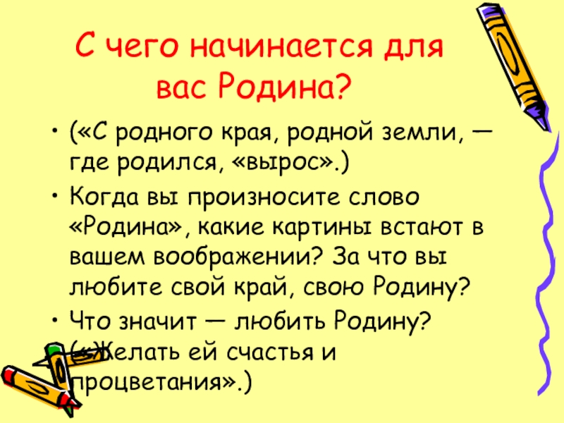 Что значит — любить Родину? («Желать ей счастья и процветания».)