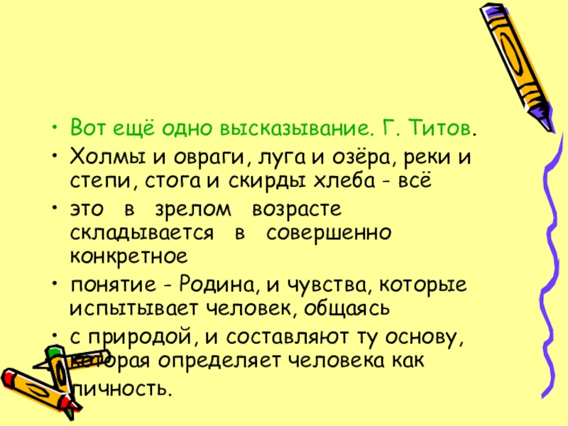(«Чувства любви к Родине, стремление ее сделать прекраснее, защитить, если потребуется».)