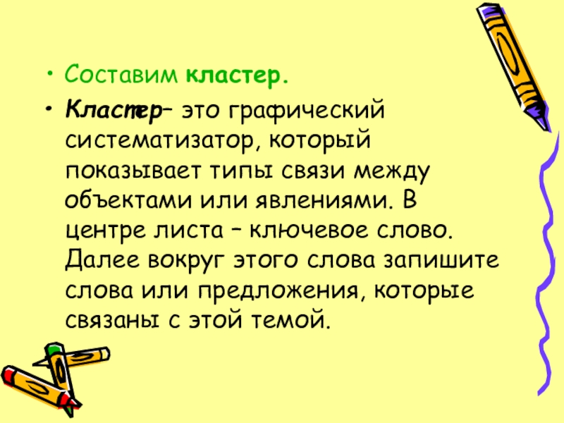 Кластер– это графический систематизатор, который показывает типы связи между объектами или