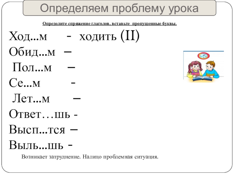Дать задание, порождающее затруднение (несходное с предыдущим, на новый материал и др.)