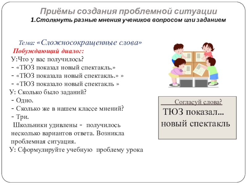 Предъявить ученикам два противоречащих друг друга факта, мнения, две теории и т.д.!