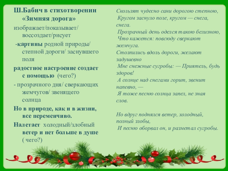 Ш.Бабич в стихотворении «Зимняя дорога»
