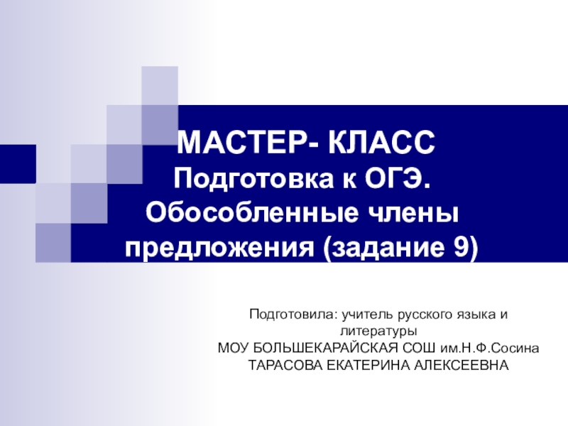 МОУ БОЛЬШЕКАРАЙСКАЯ СОШ им.Н.Ф.Сосина ТАРАСОВА ЕКАТЕРИНА АЛЕКСЕЕВНА