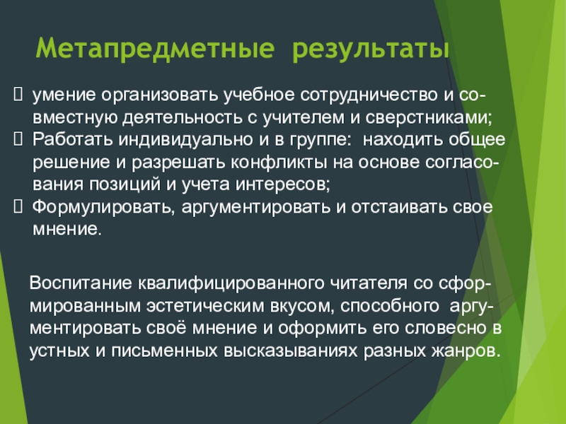 Воспитание квалифицированного читателя со сфор-мированным эстетическим вкусом, способного аргу-ментировать своё мнение и оформить его словесно в устных и письменных высказываниях разных жанров.