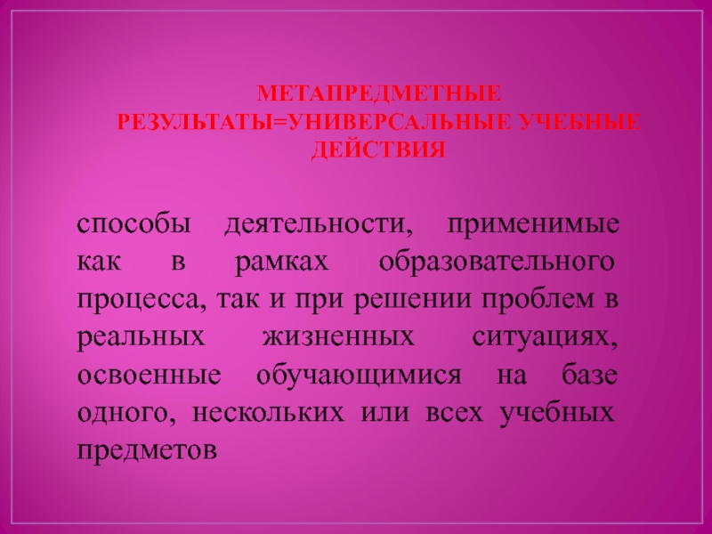 Слайд 2МЕТАПРЕДМЕТНЫЕ РЕЗУЛЬТАТЫ=УНИВЕРСАЛЬНЫЕ УЧЕБНЫЕ ДЕЙСТВИЯ
