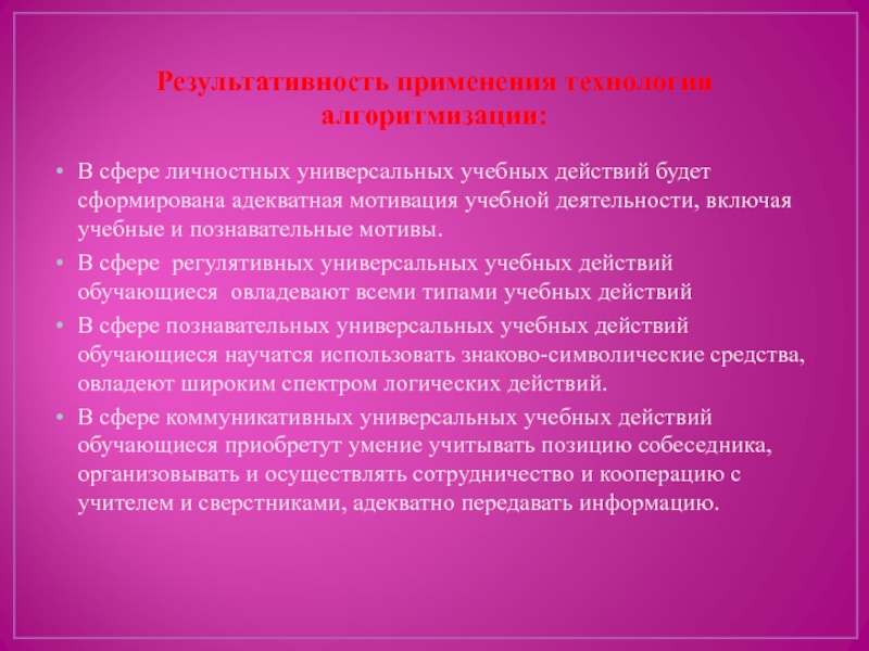 Слайд 16Результативность применения технологии алгоритмизации: