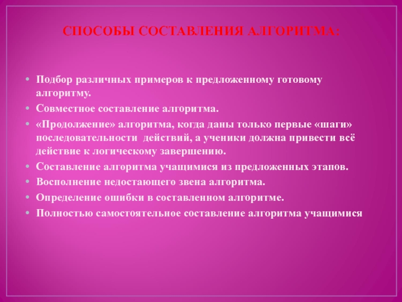 Слайд 8СПОСОБЫ СОСТАВЛЕНИЯ АЛГОРИТМА: