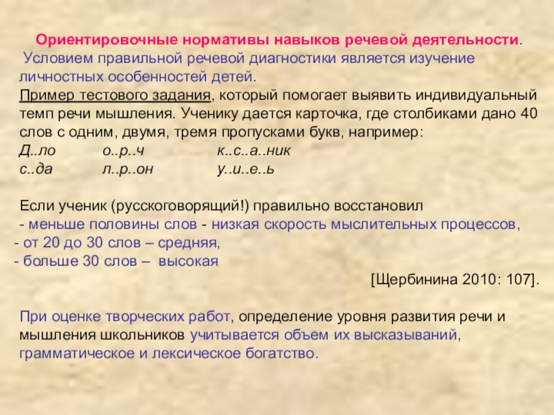 Слайд 15Ориентировочные нормативы навыков речевой деятельности.