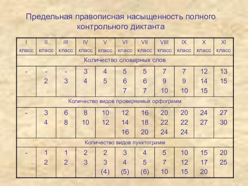 Слайд 3Предельная правописная насыщенность полного контрольного диктанта