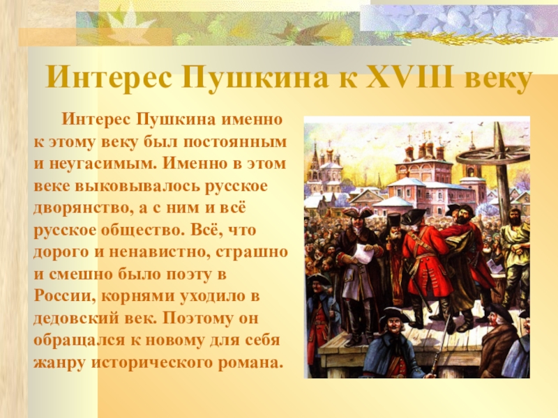 Чем заинтересовал Пушкина XVIII век? И как это связано с его произведением?