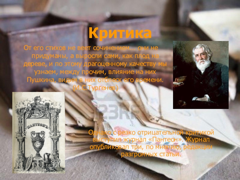 Однако с резко отрицательной критикой выступил журнал «Пантеон». Журнал опубликовал три, по мнению, редакции разгромных статьи.