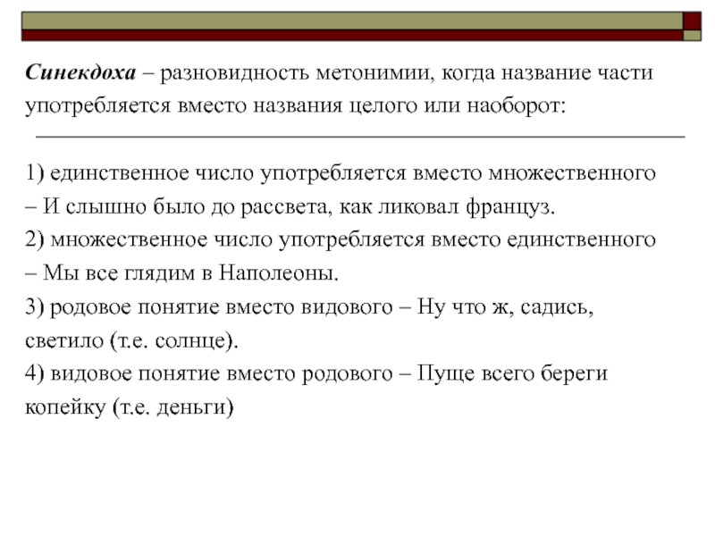 Слайд 7Синекдоха – разновидность метонимии, когда название части
