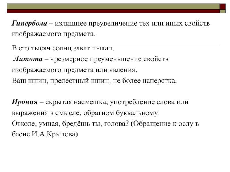 Слайд 8Гипербола – излишнее преувеличение тех или иных свойств