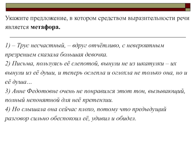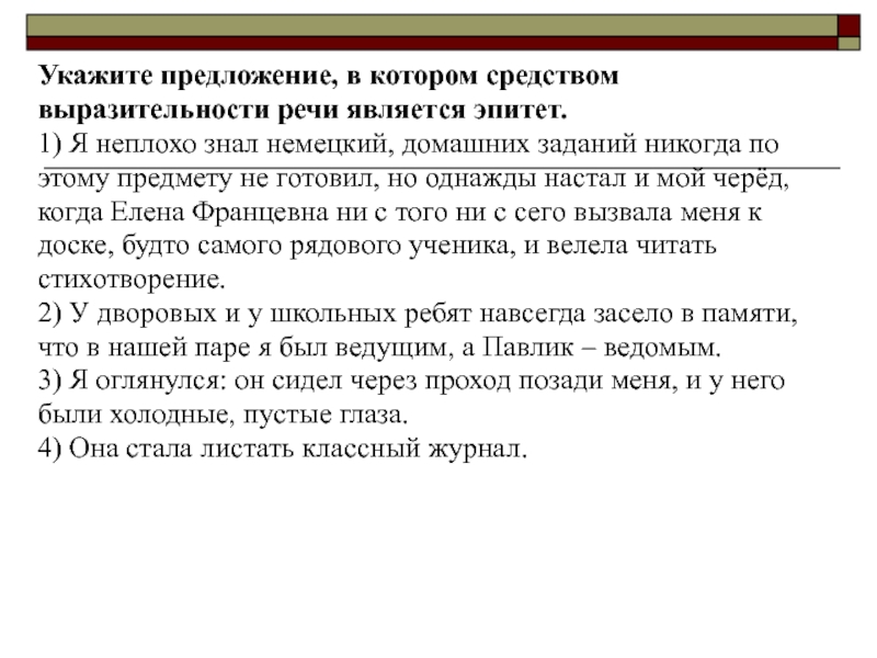 Слайд 18Укажите предложение, в котором средством выразительности речи