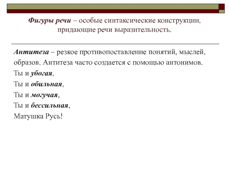 Фигуры речи – особые синтаксические конструкции, придающие речи выразительность.
