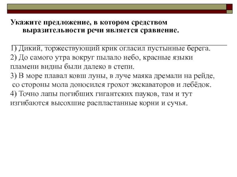 Слайд 20Укажите предложение, в котором средством выразительности речи является сравнение.