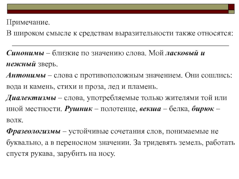В широком смысле к средствам выразительности также относятся: