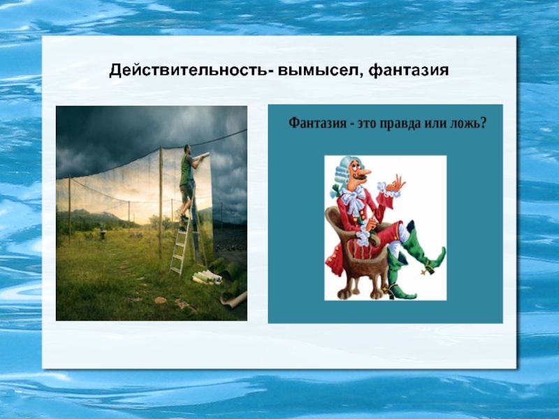 Слайд 24В предложениях 17—18 найдите антоним к слову «реальность» и выпишите его.