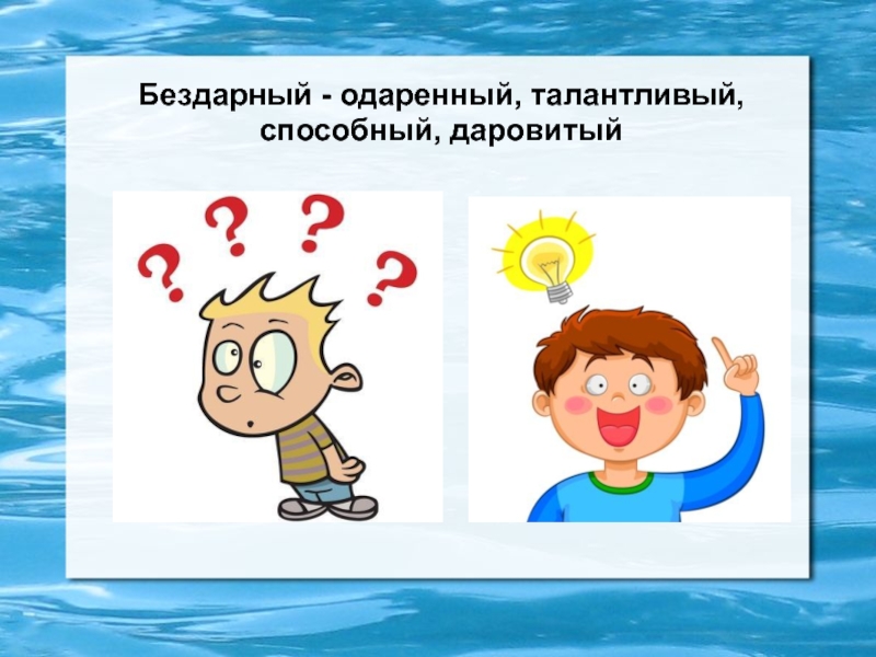 Слайд 56Бездарный - одаренный, талантливый, способный, даровитый