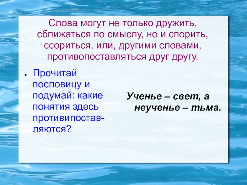 Слайд 10Слова могут не только дружить, сближаться по смыслу, но и спорить,