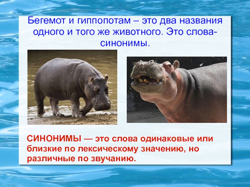 Слайд 8Бегемот и гиппопотам – это два названия одного и того же