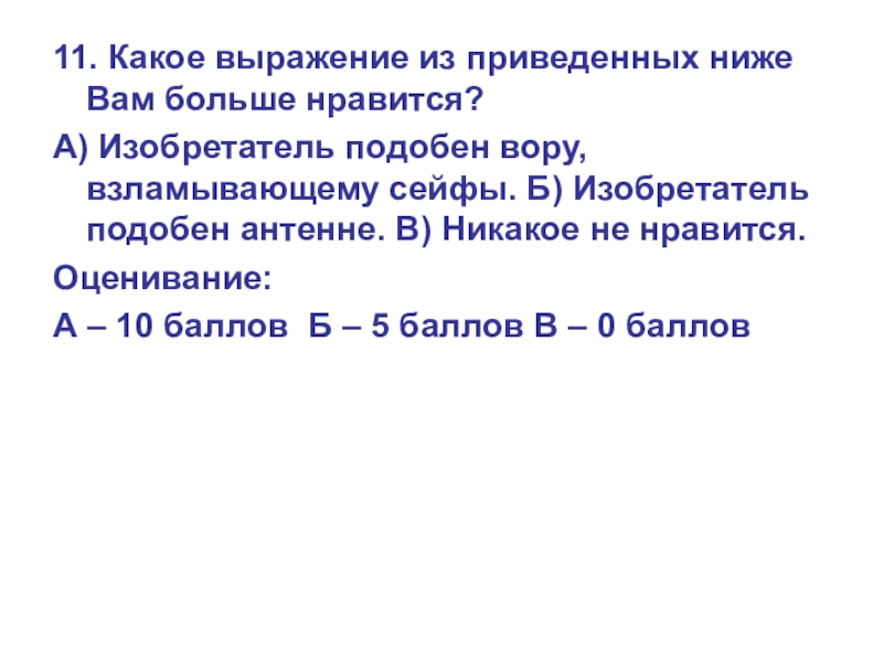 вору, взламывающему сейфы. Б) Изобретатель подобен антенне. В) Никакое не нравится.