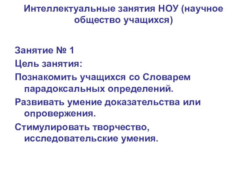 Слайд 14Интеллектуальные занятия НОУ (научное общество учащихся)