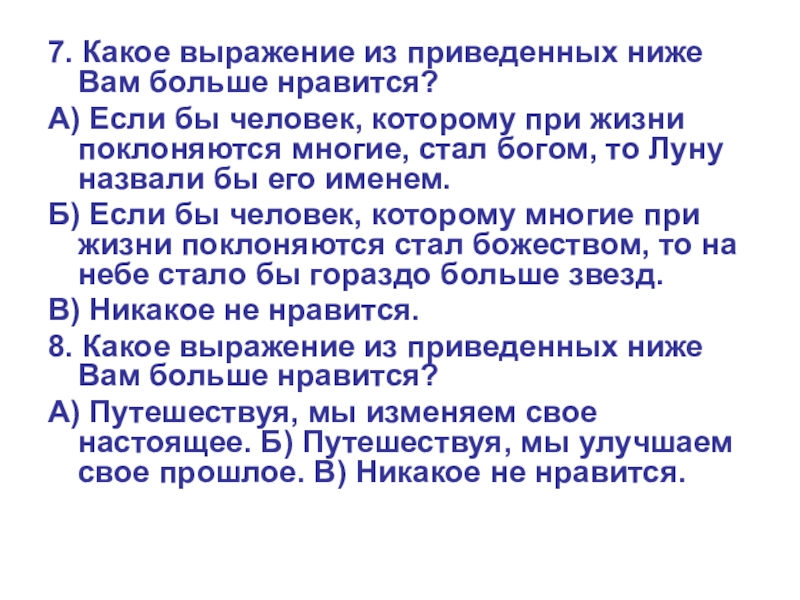 7. Какое выражение из приведенных ниже Вам больше нравится?