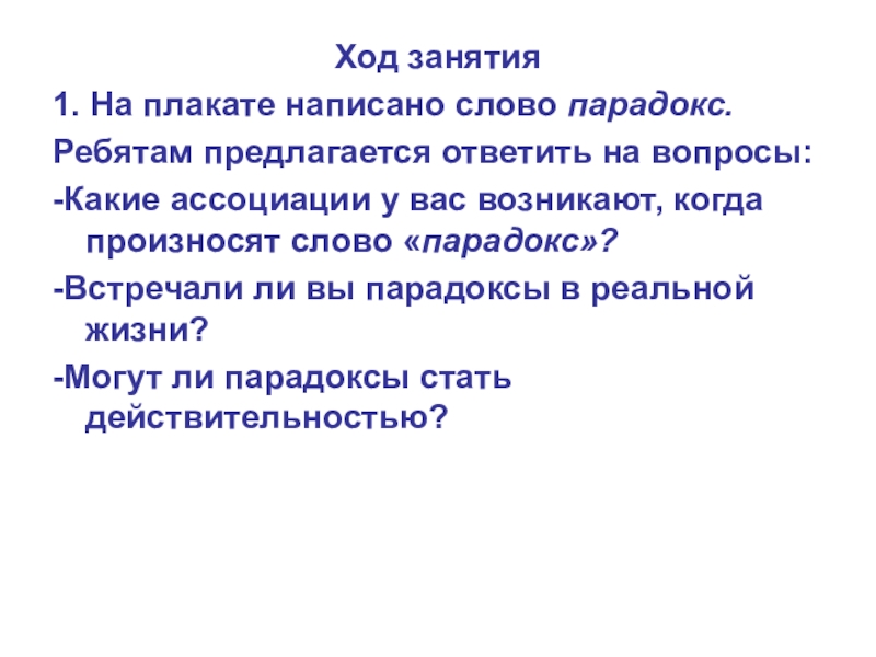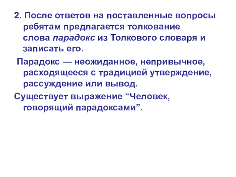 2. После ответов на поставленные вопросы ребятам предлагается толкование слова парадокс из Толкового словаря
