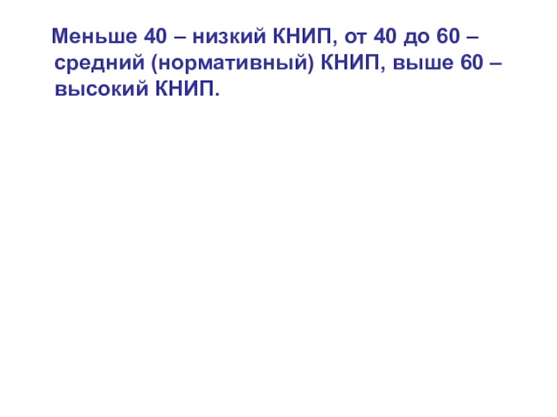 – средний (нормативный) КНИП, выше 60 – высокий КНИП.